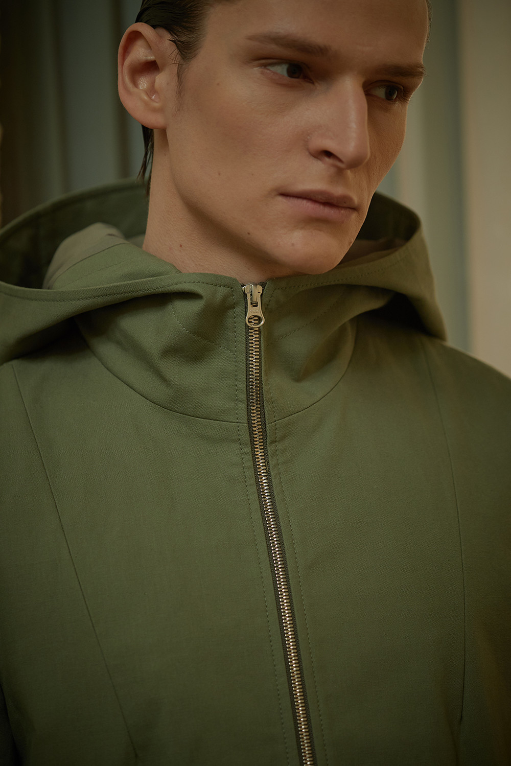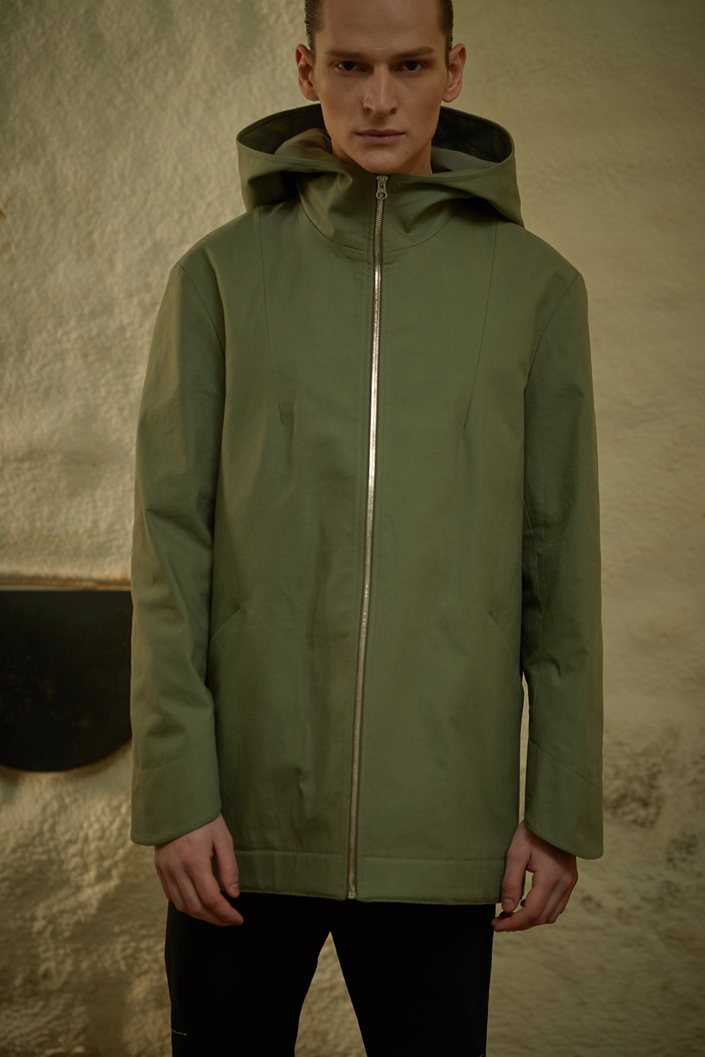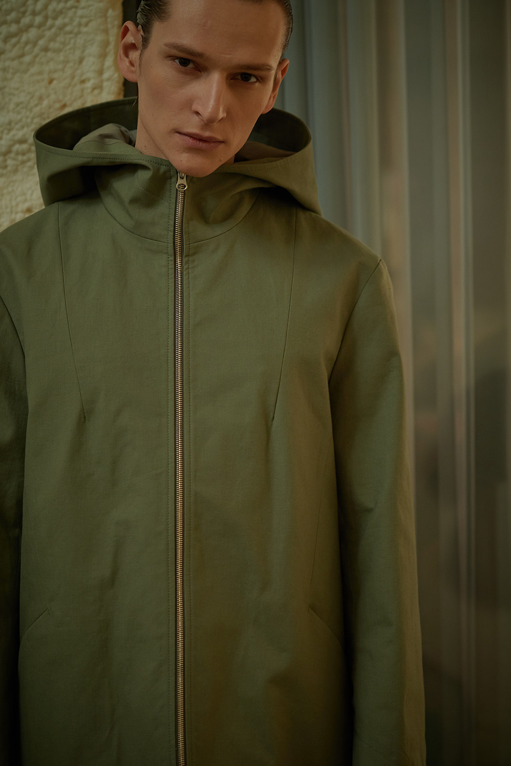 Dart Detailed Hooded Cotton Jacket003