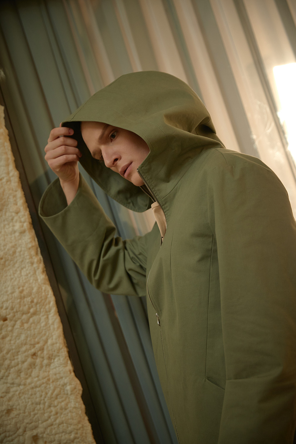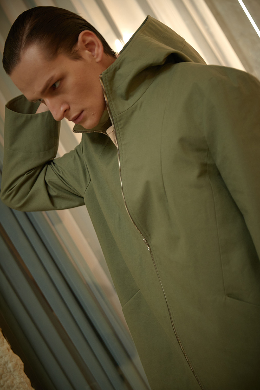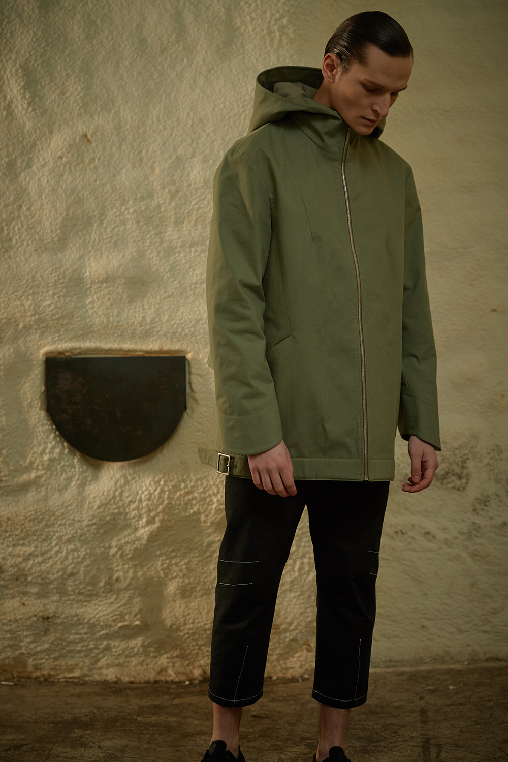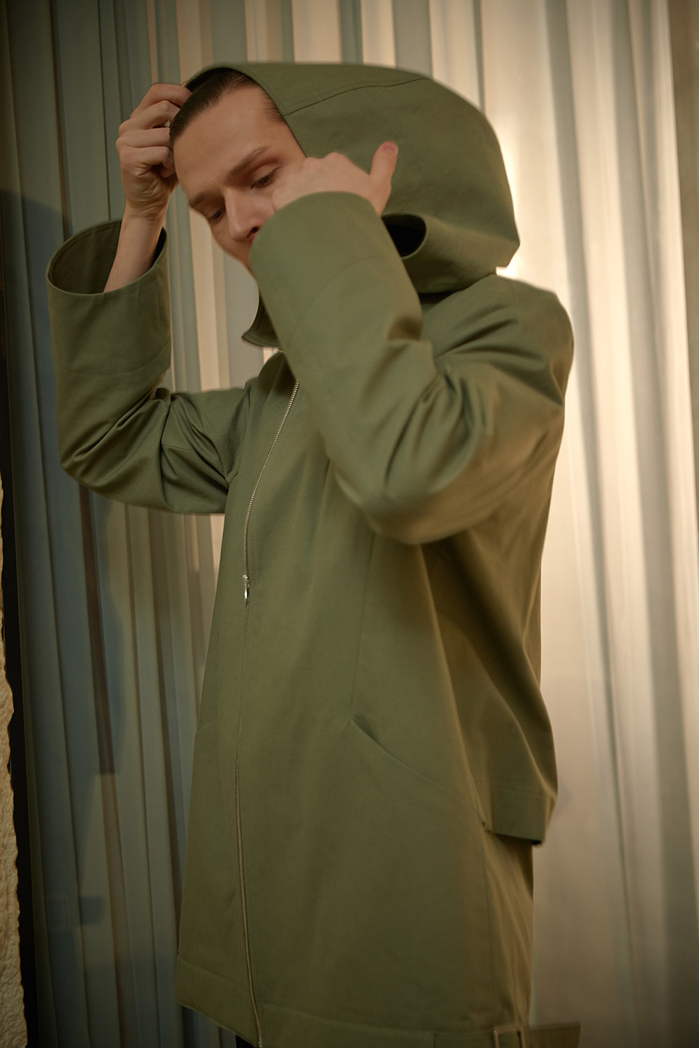 Dart Detailed Hooded Cotton Jacket003