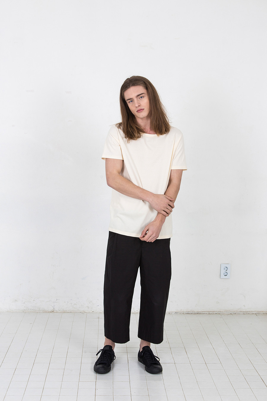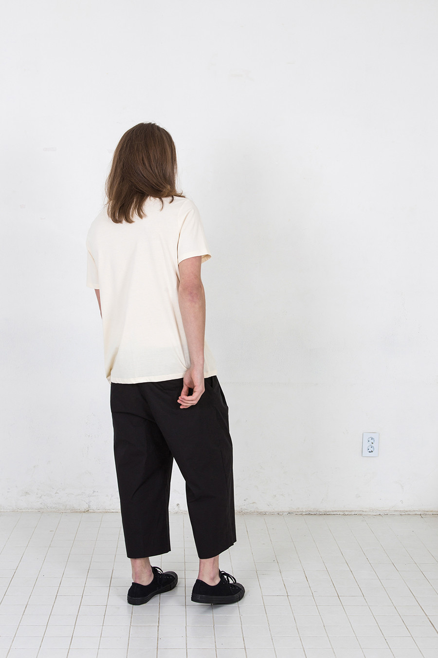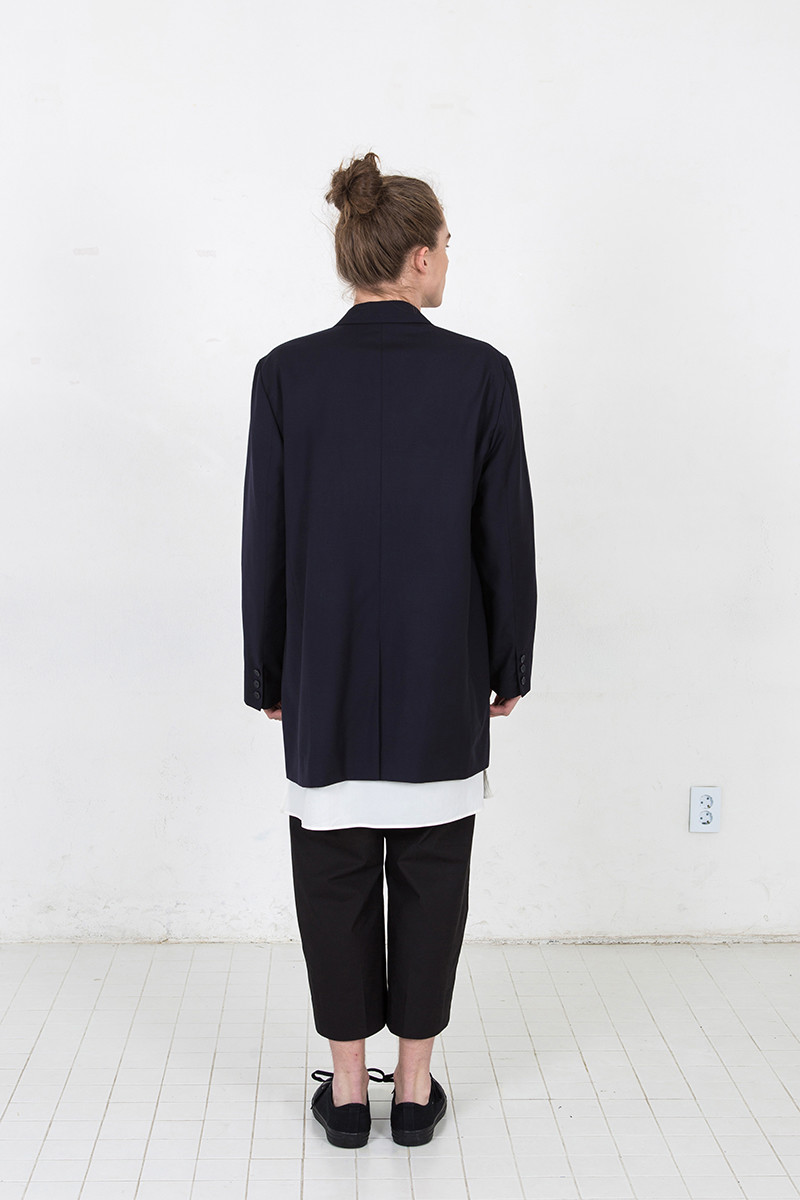 3 Botton Loose Fit Navy Jacket과 같이 풀룩으로 스타일링하기 좋은 바지. 밑단이 많이 올라간 지점에서의 탑스티치 디테일. Wide Fit Cropped Jeans보다는 폭인 좁은 wide fit. 40수 100% 얇은 면 원단을 사용하여 여름 내내 착용가능. 이번 에쏘피의 ss18 다른 아이템들과 폭넓게 스타일링이 가능하다는 점에서 활용도가 높은 아이템.
