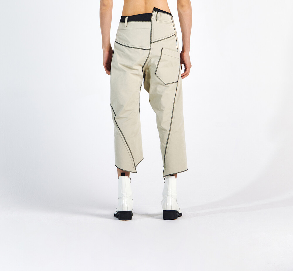 Asymmetric Overlock Exposure Cropped Trousers 004 -in house-