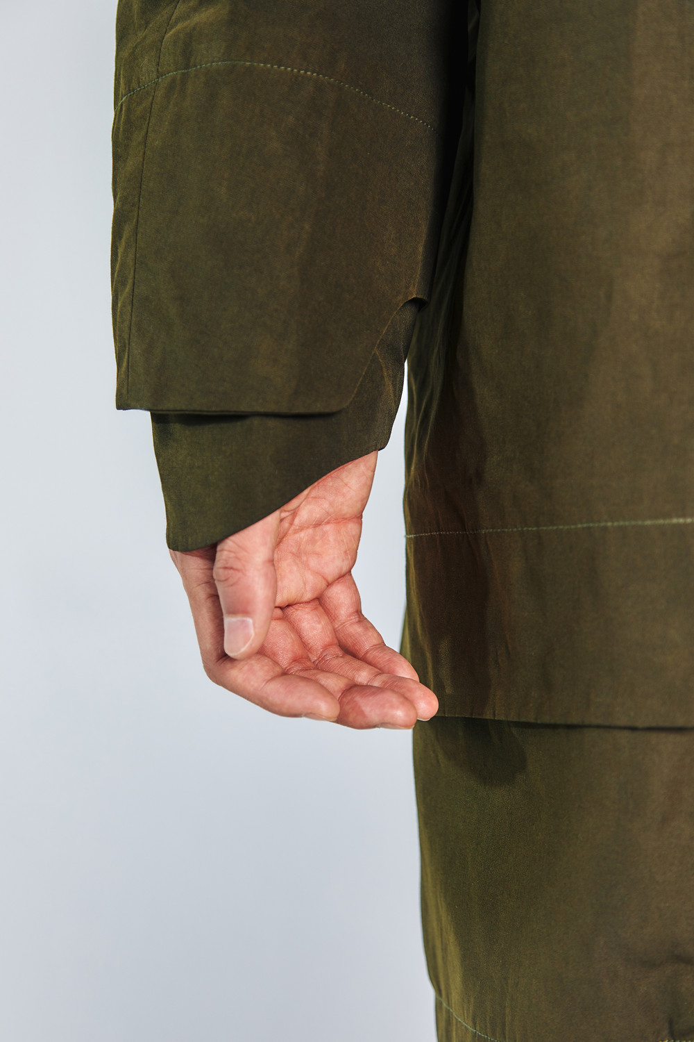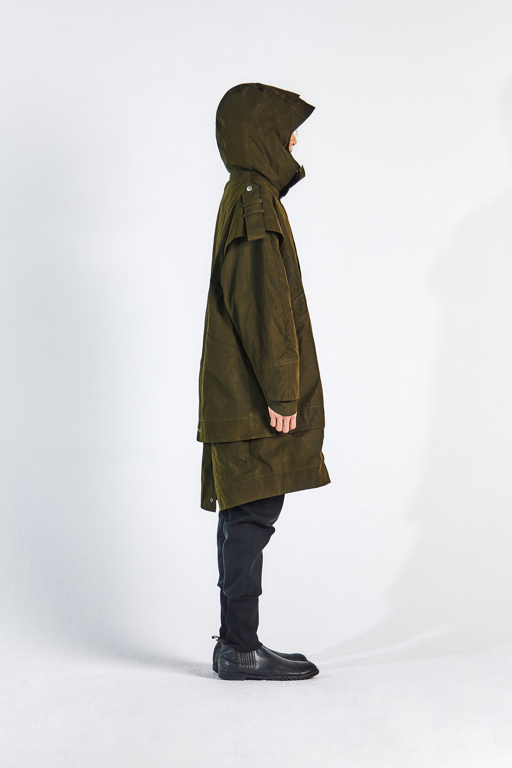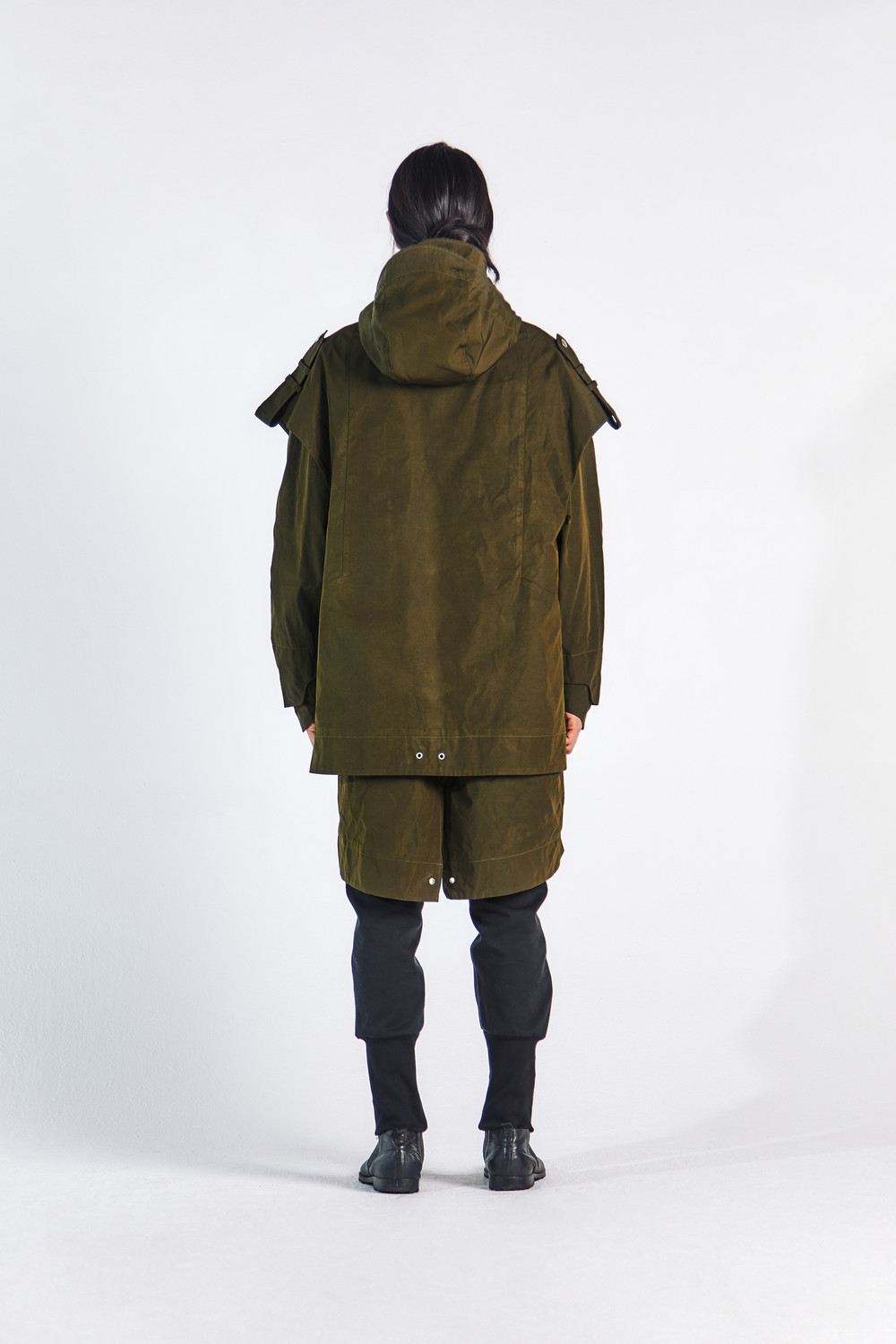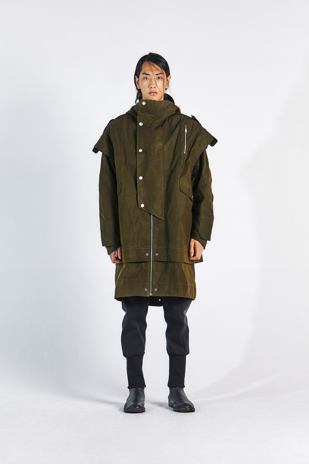 Layered Panels Double Hooded Long Parka 001-in house- 제품의 다른 컬러 아이템. 이번 aw20 컬렉션 중에 첫번째 인하우스 라인 제품. (사이즈는 L 이지만, 고객님의 취향에 맞게 기장이나 핏 등이 완벽하게 bespoke방식으로 제작이 가능하니 사이즈 변형을 원하시는 고객께서는 반드시 저희 스튜디오로 방문하셔서 꼭 시착을 하시기를 적극 권해드립니다). 두장의 옷이 합쳐진 같은 느낌의 롱 파카. 제품의 원단과 여러 특성들 때문에 굉장히 스트롱한 분위기를 연출하는 파카임. 레이어링 특징과 긴 기장감 때문에 원단 소요량이 엄청남. 뿐만 아니라 안감도 패딩에 사용하는 고급 겉감을 사용하여 원단에 들어가는 비용이 굉장히 높음. 전면과 후면의 아일렛 디테일과 두장의 후드, 소매 디테일 등 디자이너 브랜드의 감성을 느낄 수 있는 아이템. 좌우에 안주머니가 있고, 사용된 지퍼는 모두 YKK.