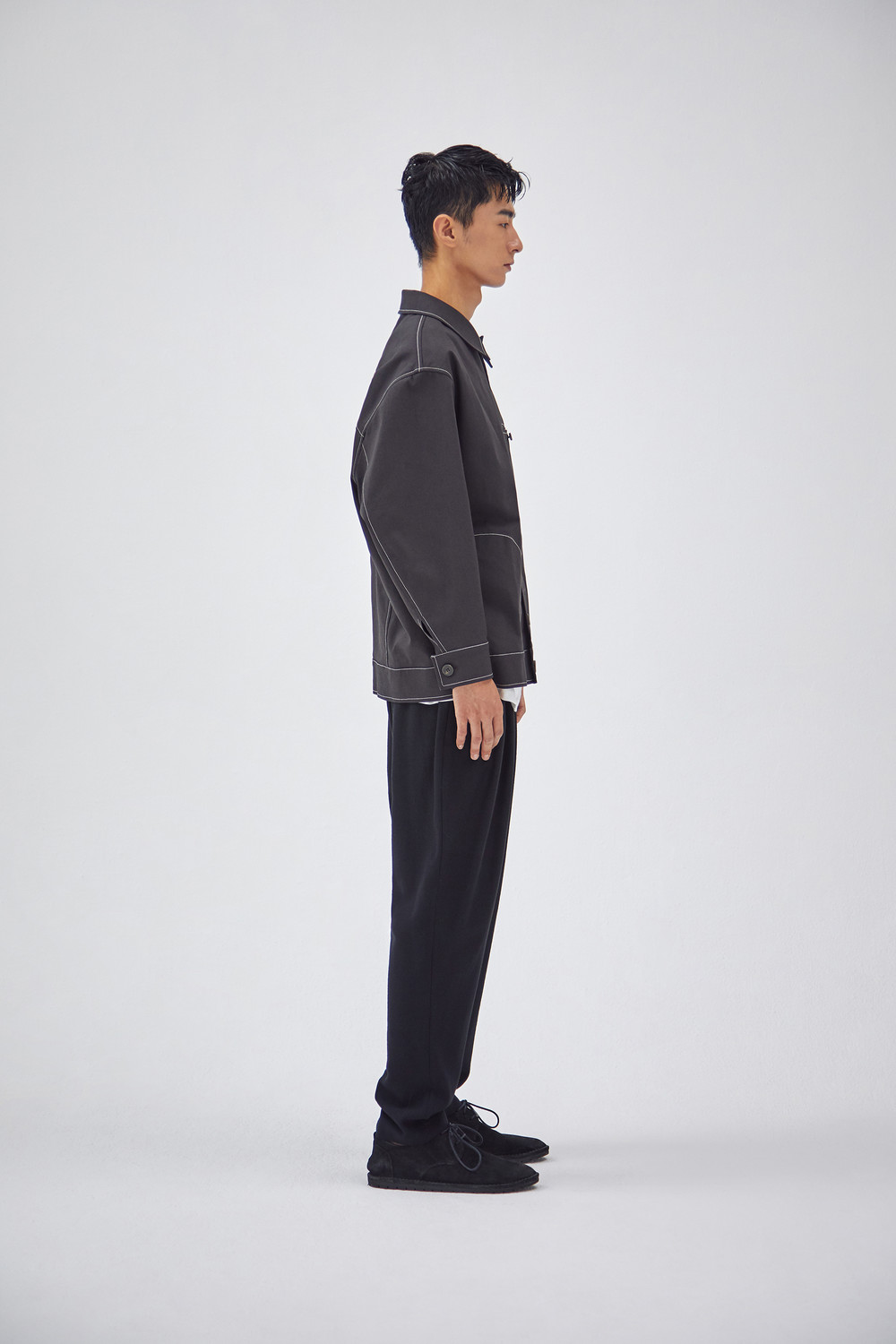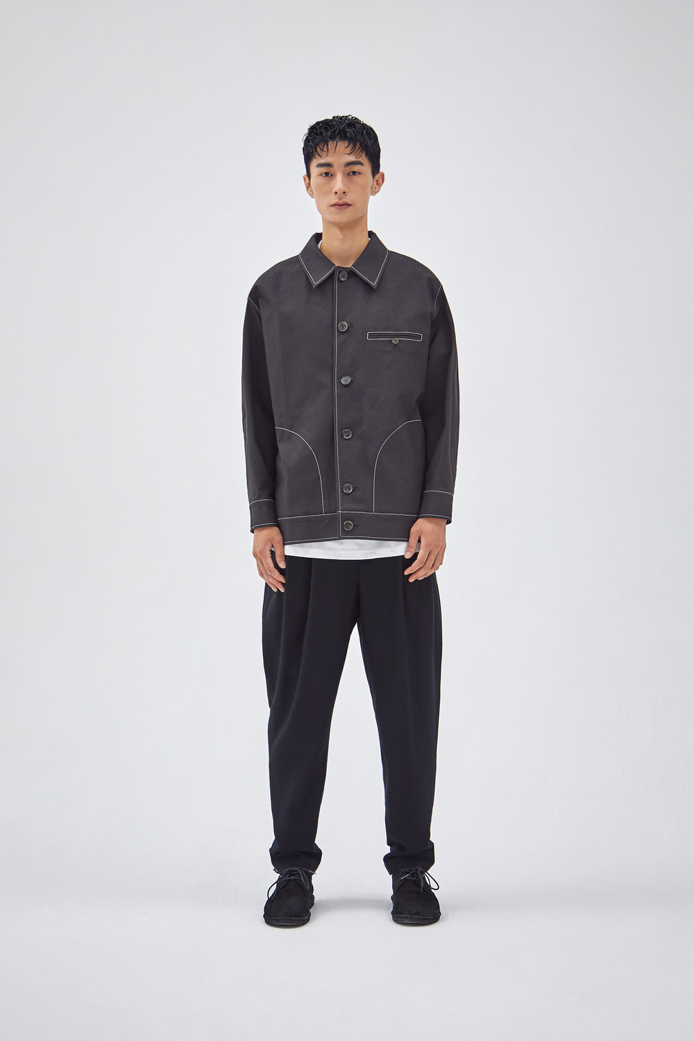 Oversized Top Stitch Detailed Workwear Jacket 003의 다른 컬러 버젼. 간절기용으로 어디에나 매치하기 좋은 자켓. 폴리우레탄이 혼용되어 스트레치감이 적당히 있어서 활동하기에도 굉장히 편안함. 살짝 드롭된 어깨선과 더불어 벌룬핏으로 디자인하여 더 풍성하고 루즈한 느낌을 줌. 소매기장 역시 의도적으로 손목선으로 맞추어서 벌룬핏의 느낌을 최대한 살렸음. 옷 내부는 전부다 binding tape 마감(고급 finishing 방법으로 오바로크로 마무리하는 것 보다 훨씬 깔끔하고 세련되 보입니다). 자켓의 왼쪽 안에는 패치포켓형 안주머니를 달아서 실용성도 배려하였음.