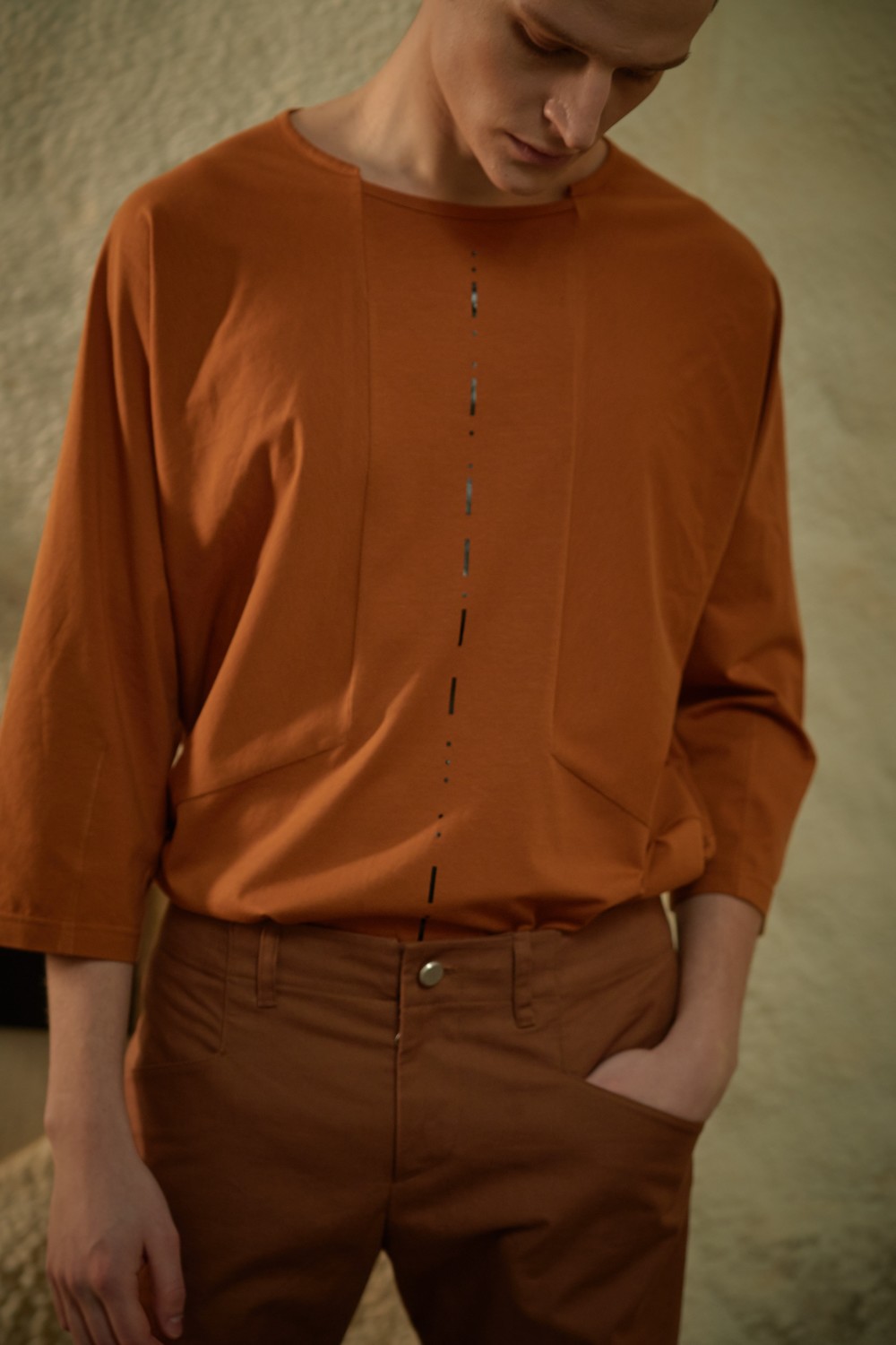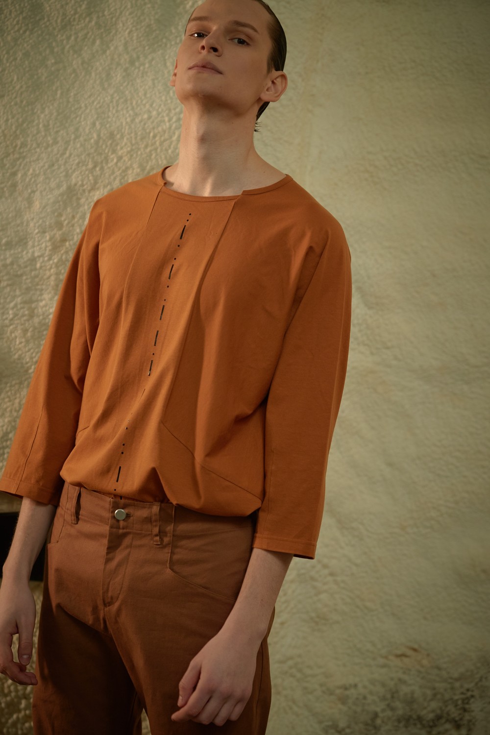 이번 시즌 키 디테일 아이디어인 다트와 그 위에 deep한 오렌지 컬러의 부담스럽지 않은 탑스티치.