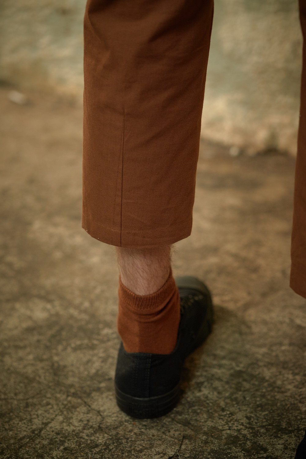 벨트를 차는 waistband가 바지의 몸판 위에 봉제되는 방법이 아닙니다. 자켓의 전면 몸판 안쪽에 안감과 연결되는 안단을 대는 방법과 유사하게 waistband를 봉제하였고, 피니싱은 탑스티치로 마무리하여 겉에서 봤을 때 바지위에 올라가는 다른 스티치들과 교차하면서 감각적인 분위기를 연출합니다.