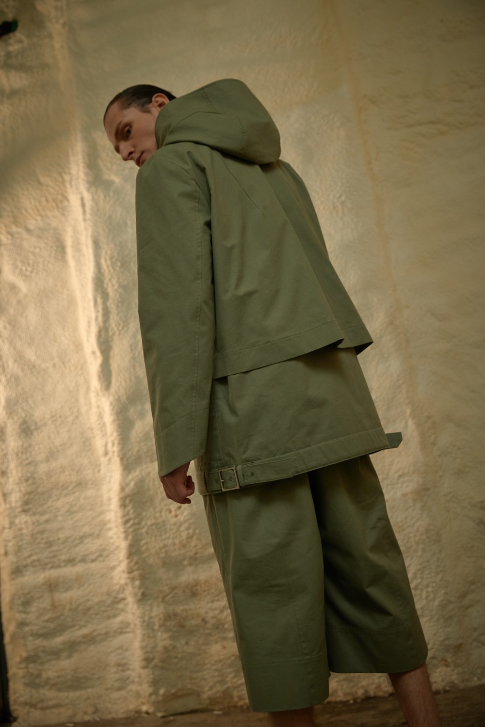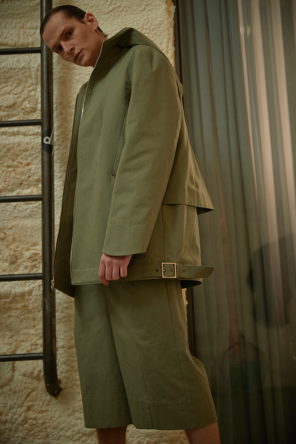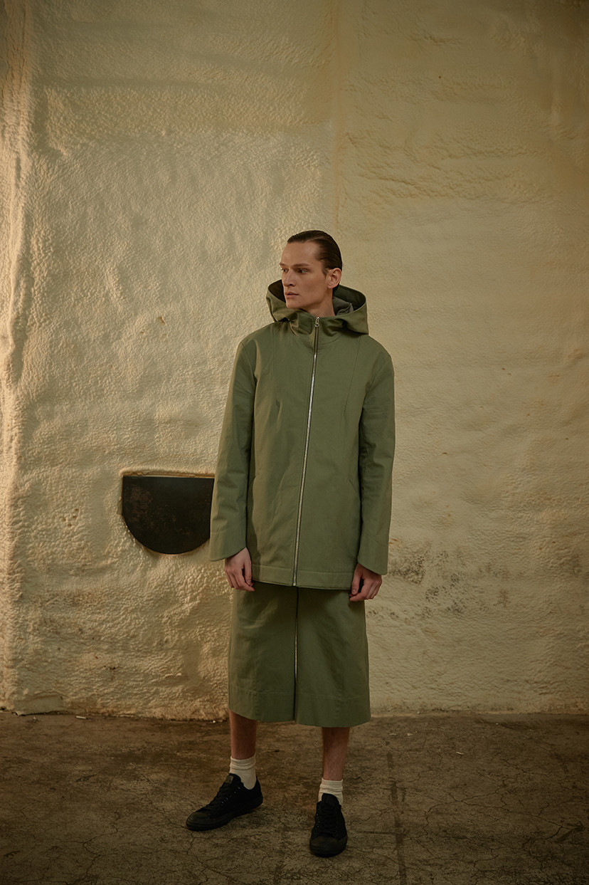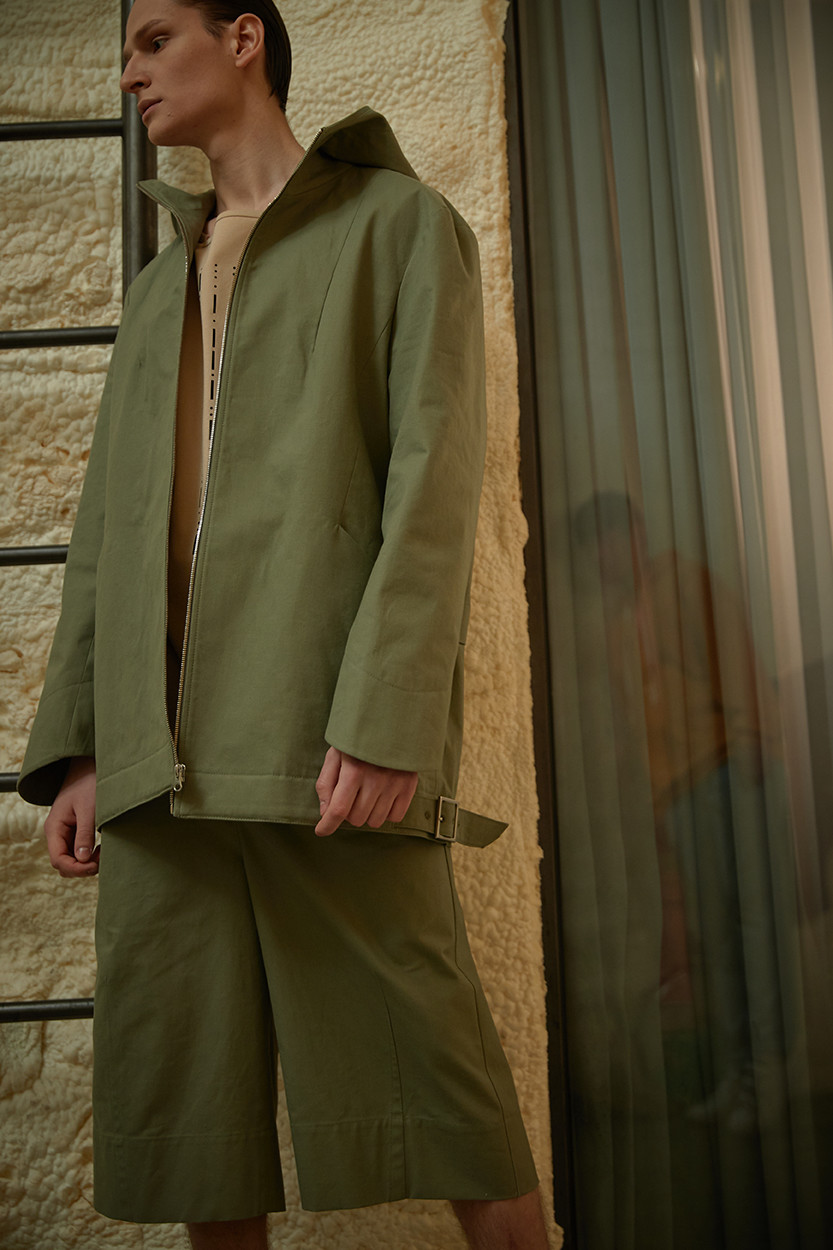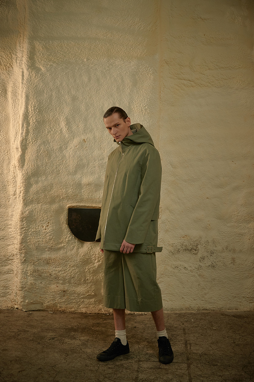Wide Fit Dart Detailed Cropped Trousers 005의 다른 컬러, 다른 원단 버전. esopie의 시그니쳐 핏인 H라인 바지로 직선적인 실루엣이 매력적인 아이템. 100% cotton의 일본 수입원단 사용. 핏이 와이드하기 때문에 한여름도 시원하게 입을 수 있음. 연한 카키색 원단에 다트 디테일들이 있고 다트 위에는 부담스럽지 않은 색상의 색상으로 탑스티치가 들어가 있음.
