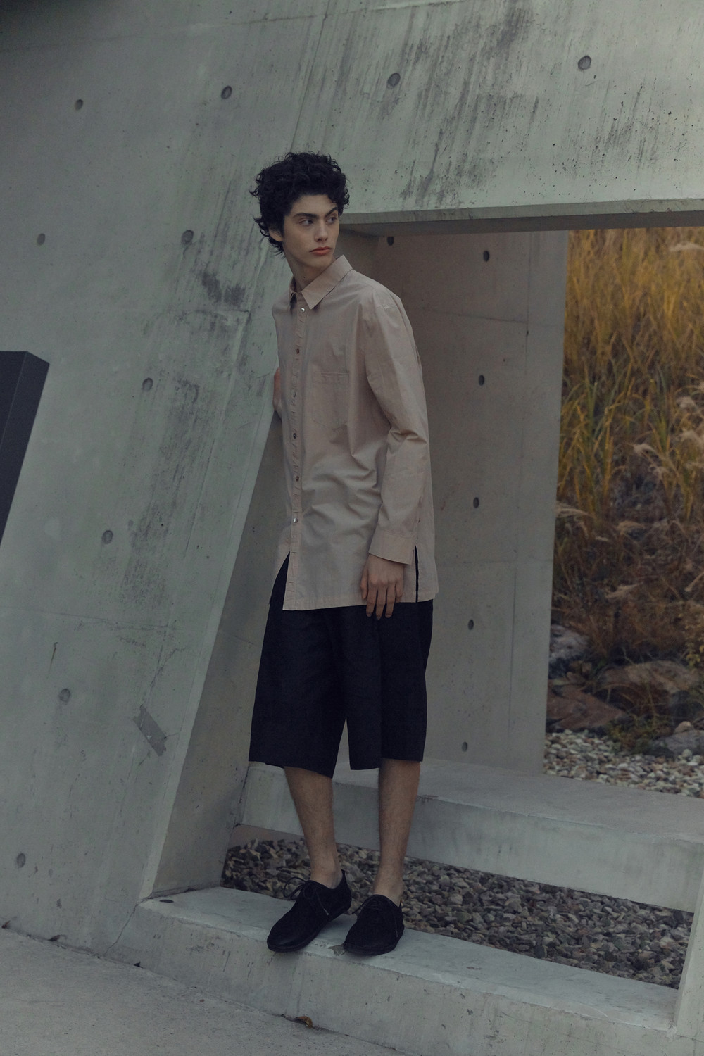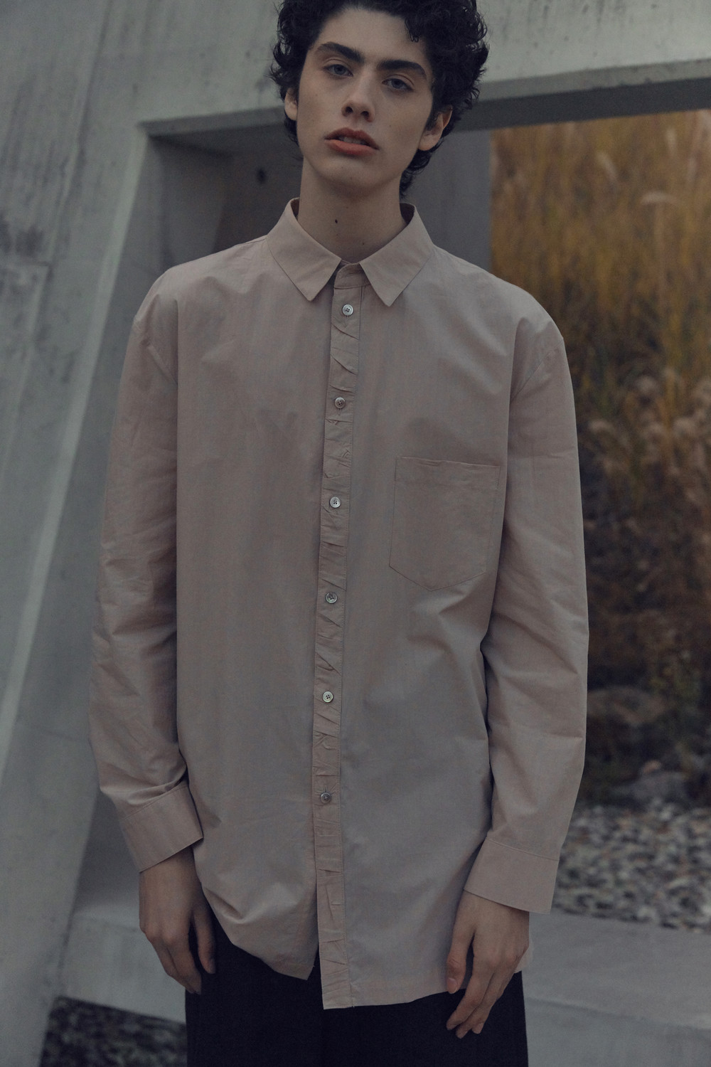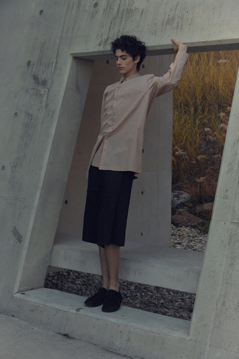 SS20 Creased Button Stand Detailed Shirt 001의 버튼 스탠드 디테일은 기계에 의해 일정한 양식으로 구겨지는 것이 아니라 디자이너가 피스마다 직접 구김을 고착시키는 작업을 하기 때문에 모든 피스가 완벽하게 똑같을 수는 없으니 이 점 양해바랍니다.