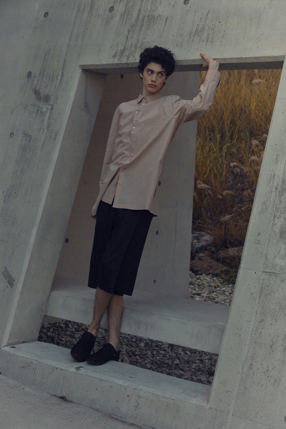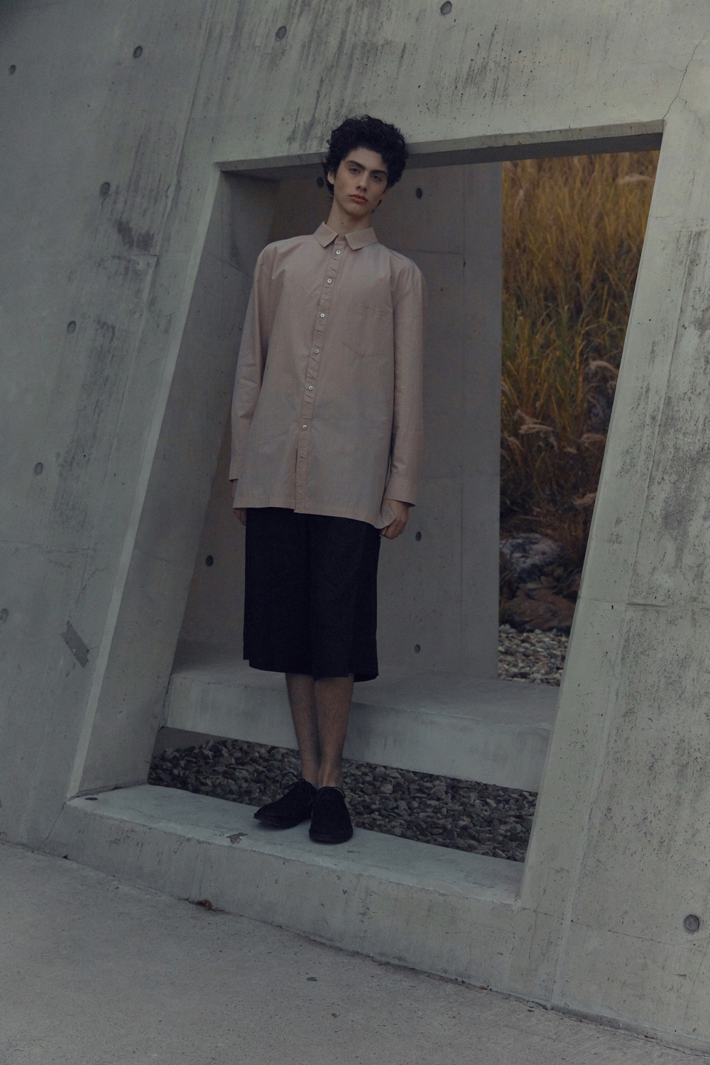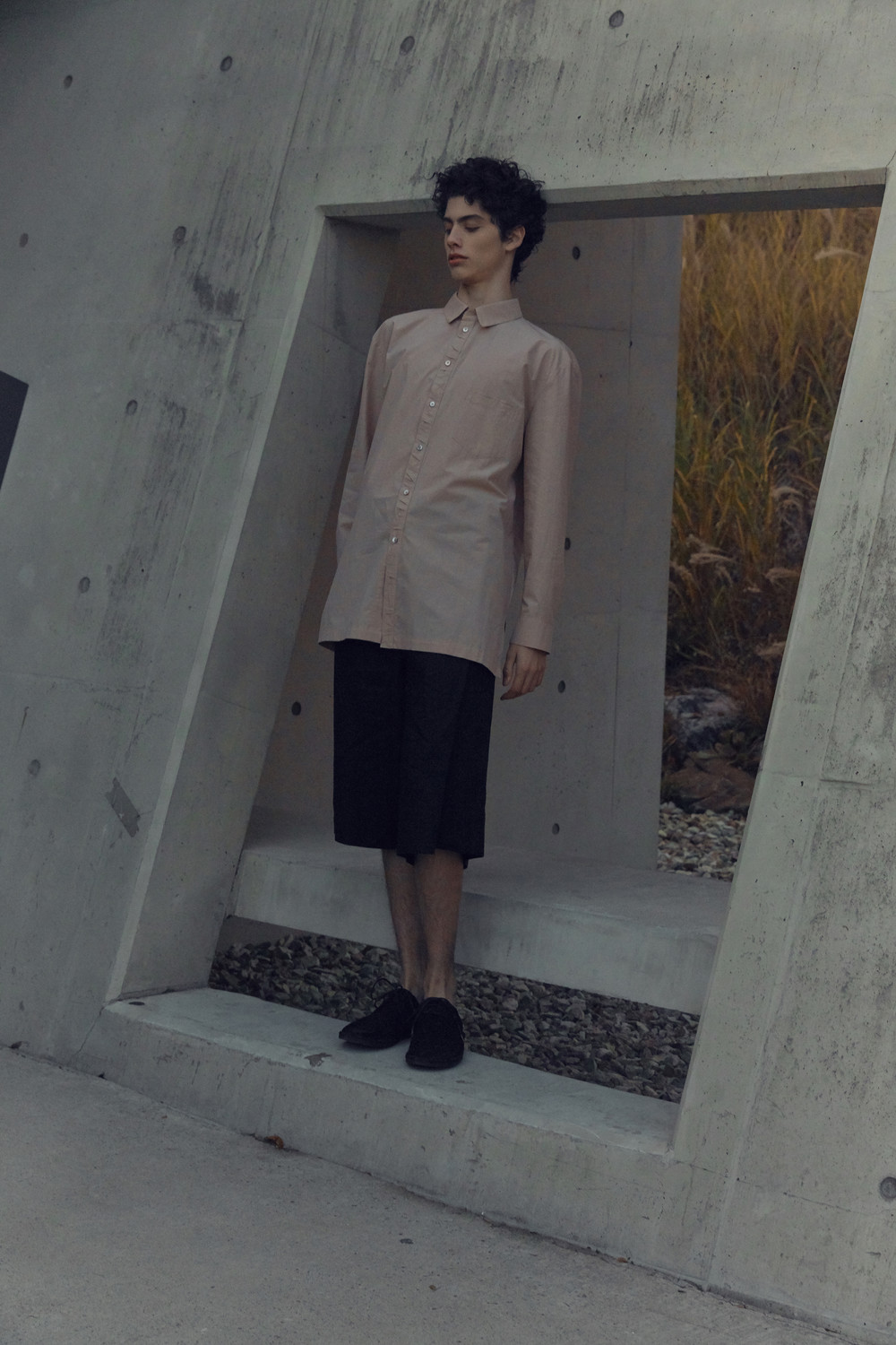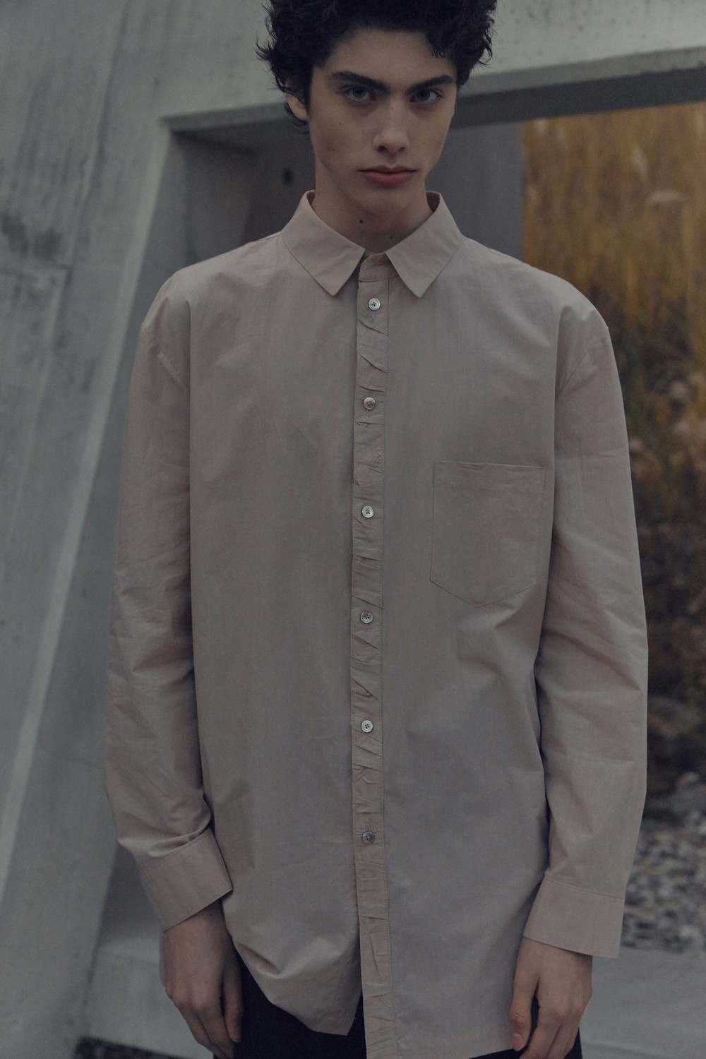 SS20 Creased Button Stand Detailed Shirt 001의 버튼 스탠드 디테일은 기계에 의해 일정한 양식으로 구겨지는 것이 아니라 디자이너가 피스마다 직접 구김을 고착시키는 작업을 하기 때문에 모든 피스가 완벽하게 똑같을 수는 없으니 이 점 양해바랍니다.