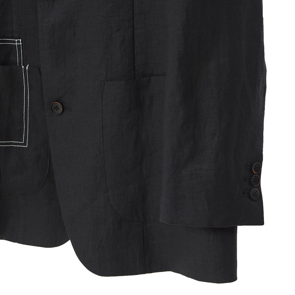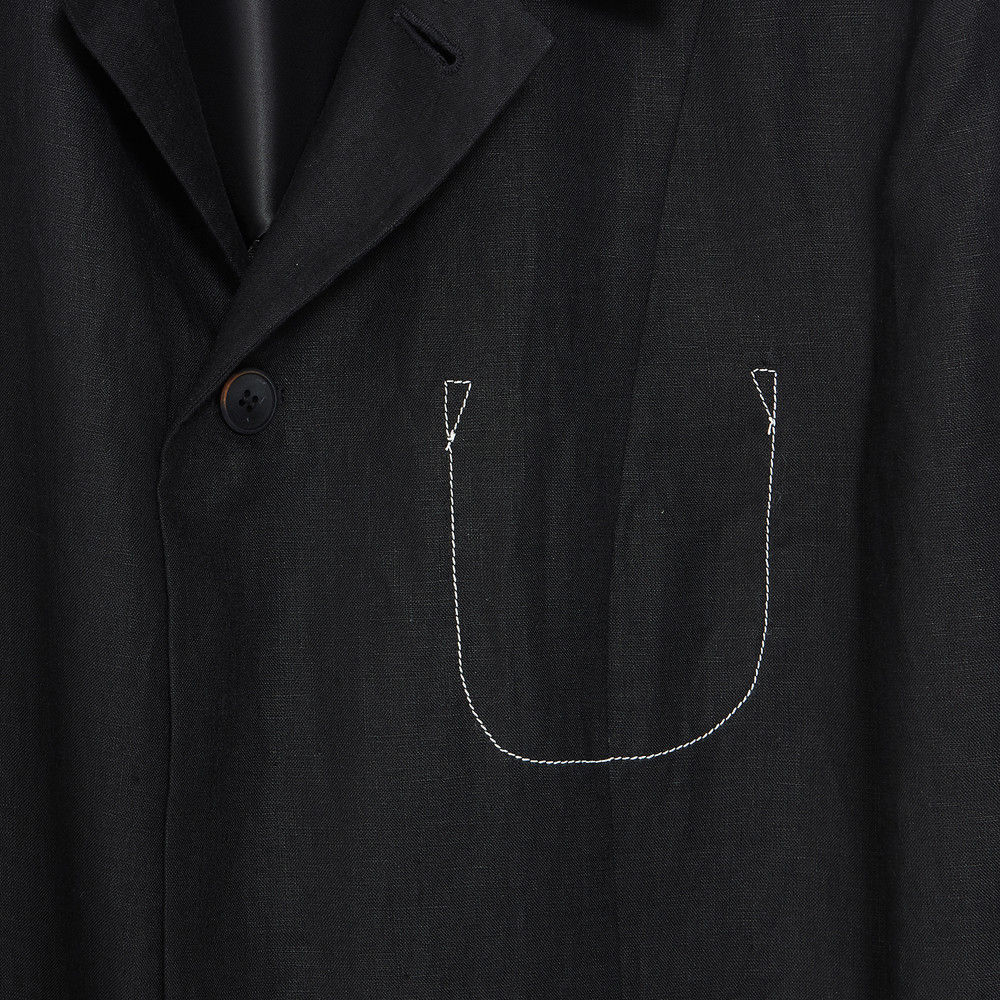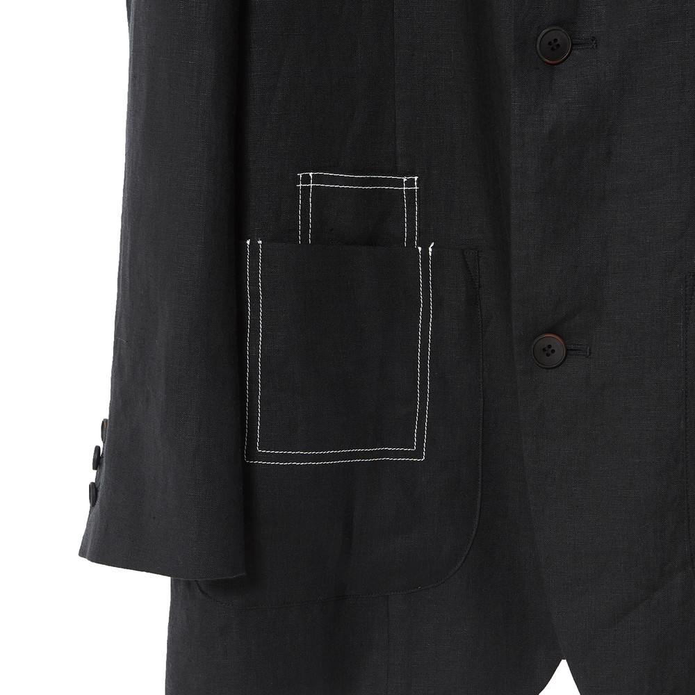 컬러 대비가 확실한 탑스티치가 디자인 포인트로 들어간 린넨 자켓입니다. 국내산 고급 100% 린넨원단으로 제작되었고, 캐쥬얼하면서 easy한 무드의 자켓으로 원단의 두께가 얇아서 한여름 직전까지 착용 가능한 아이템입니다. 부담스럽지 않게 어디에든 편하게 입을 수 있도록 실용성에 최대한 주안점을 두고 디자인한 자켓이라 어떤 아이템과도 매칭시키기에 부담이 없습니다. ss 아웃터의 특성상 반안감 방식을 채택하였고, 모든 시접은 binding tape으로 감싸서 고급스러운 느낌을 살렸습니다. 앞면의 포켓 탑스티치는 오른쪽에만 들어가 있고, 왼쪽 상단에는 주머니없이 모양으로만 탑스티치가 있습니다. 좌우 모두 안주머니를 장착하여 수납공간을 충분히 확보하였습니다.