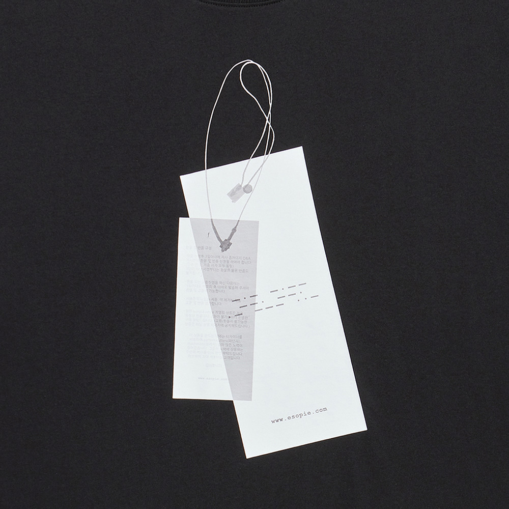 esopie의 가격택과 품질보증 택에 엑스레이의 특징인 투과성을 접목시킨 프린트 디자인입니다(저희의 프린트아이디어 develop과정이 궁금하신 고객님들께서는 esopie 공식홈의 backstory를 참고해주세요. esopie의 알 찬 시즌준비 스토리를 공유하실 수 있습니다). 내구성이 좋은 우레탄 전사방식을 사용하였기 때문에 억지로 뜯어내지 않는 이상 쉽게 떨어지지 않습니다.
