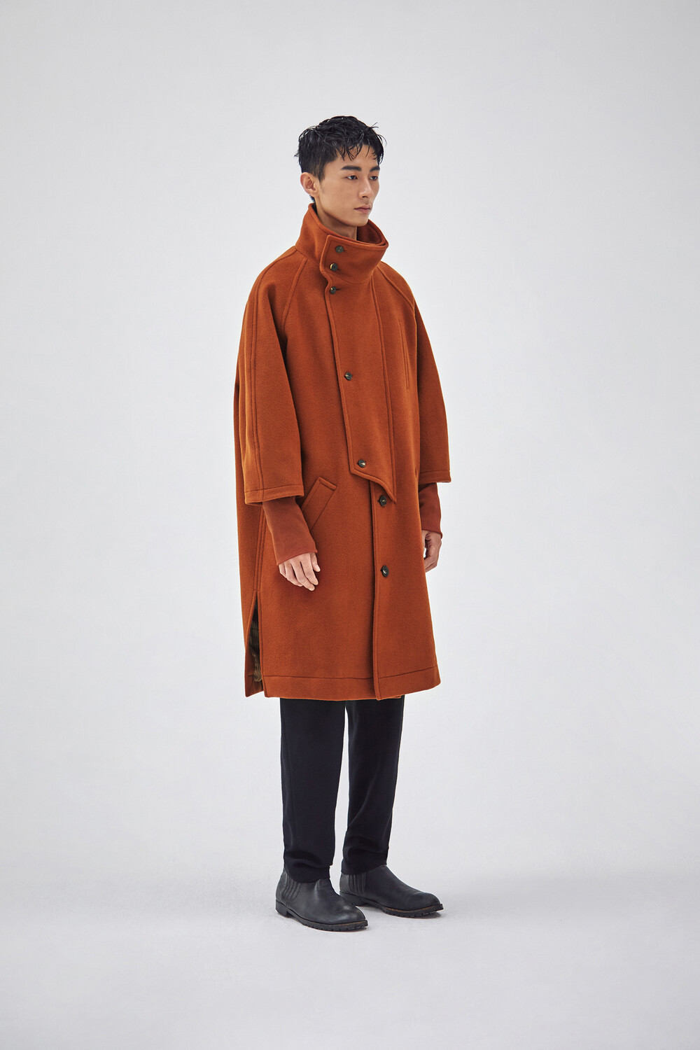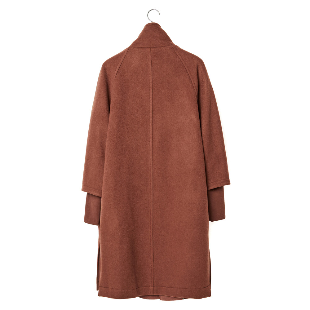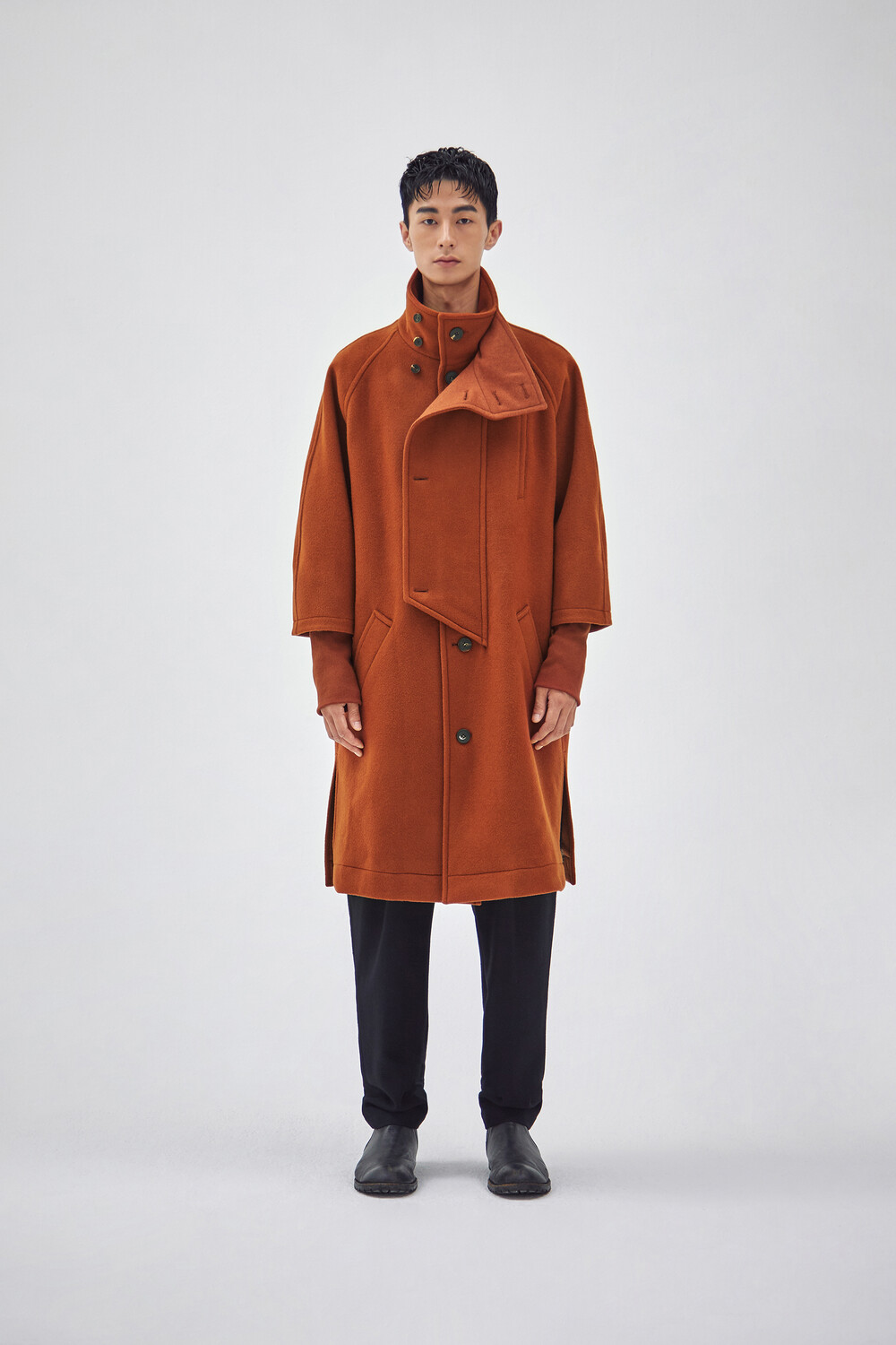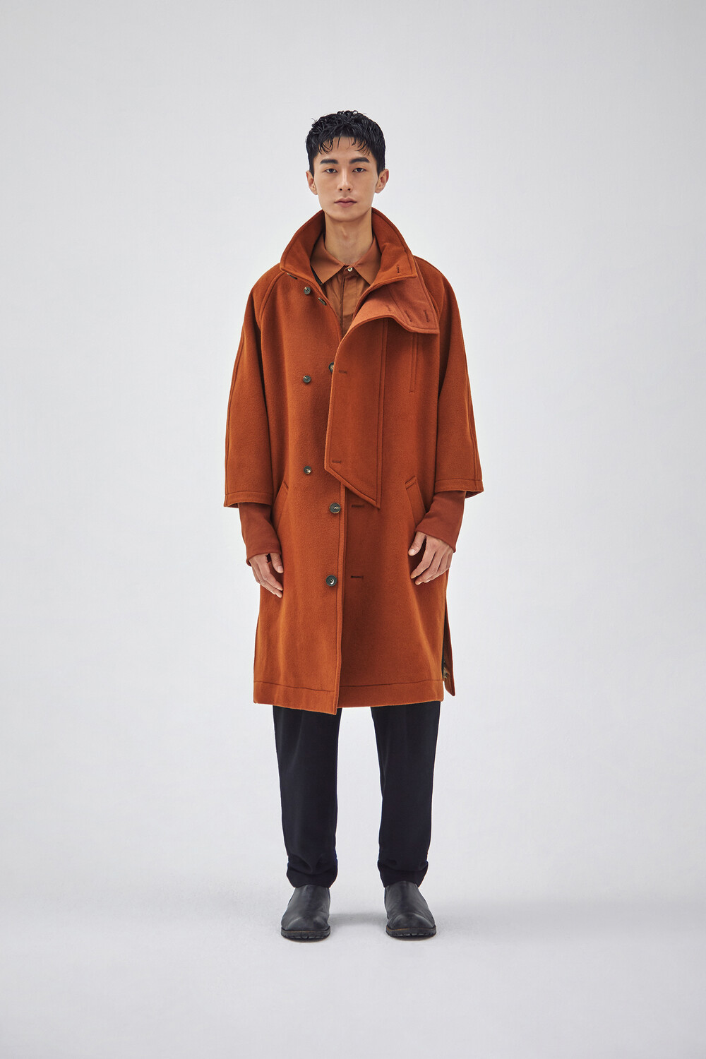 코트 전면부에는 덮개와 같은 덧단이 있어서 이를 활용한 스타일링이 가능합니다.