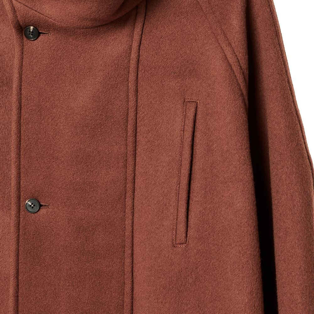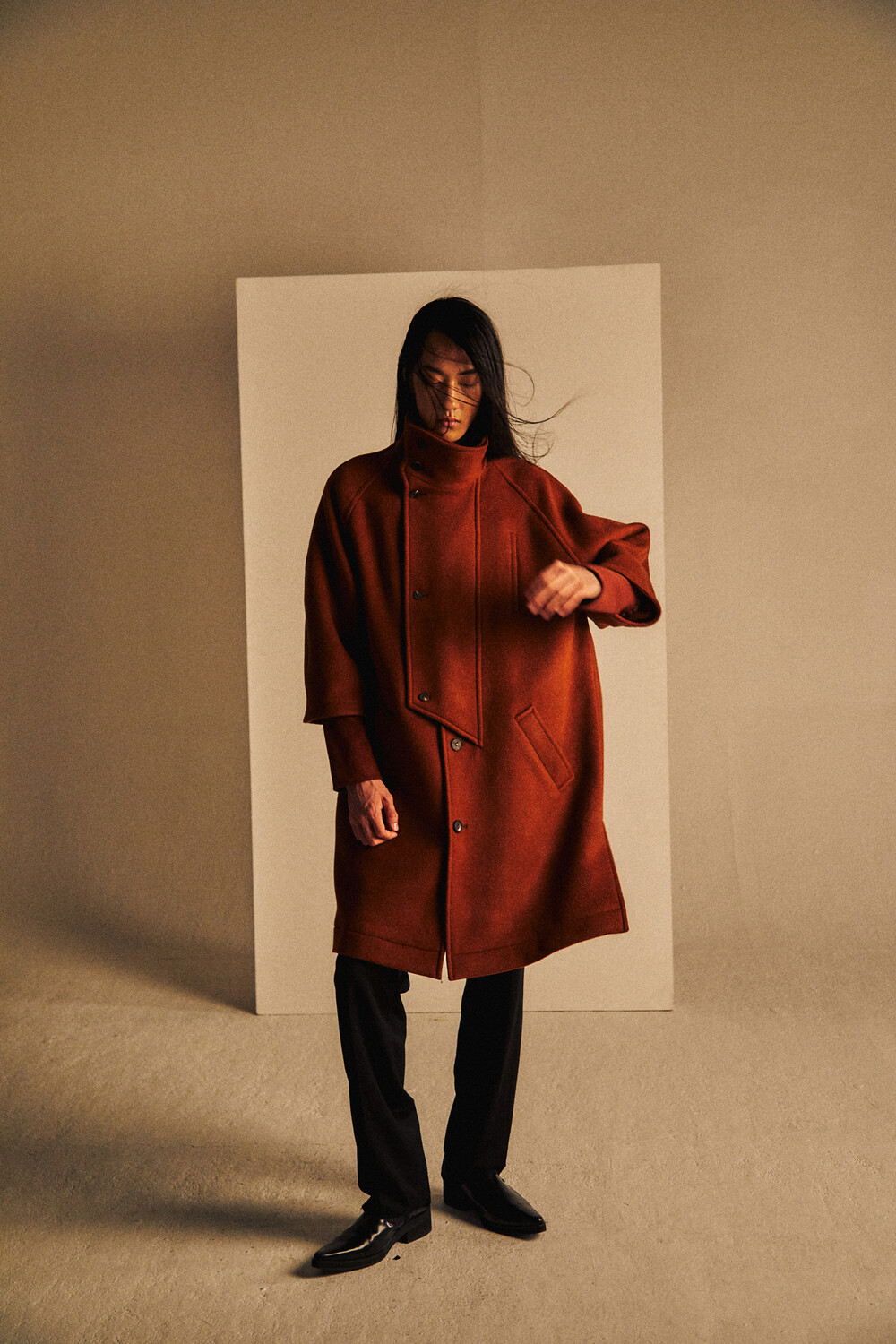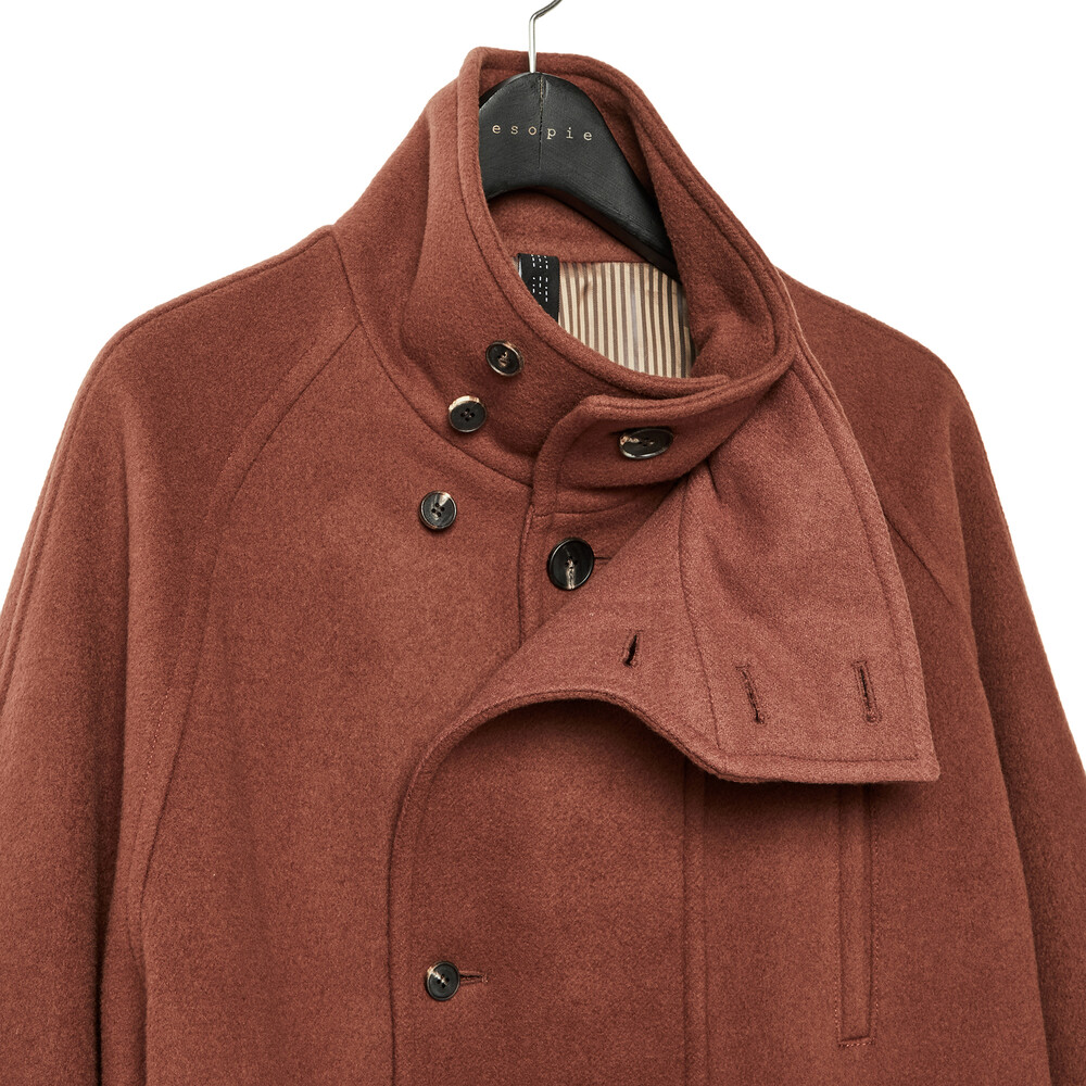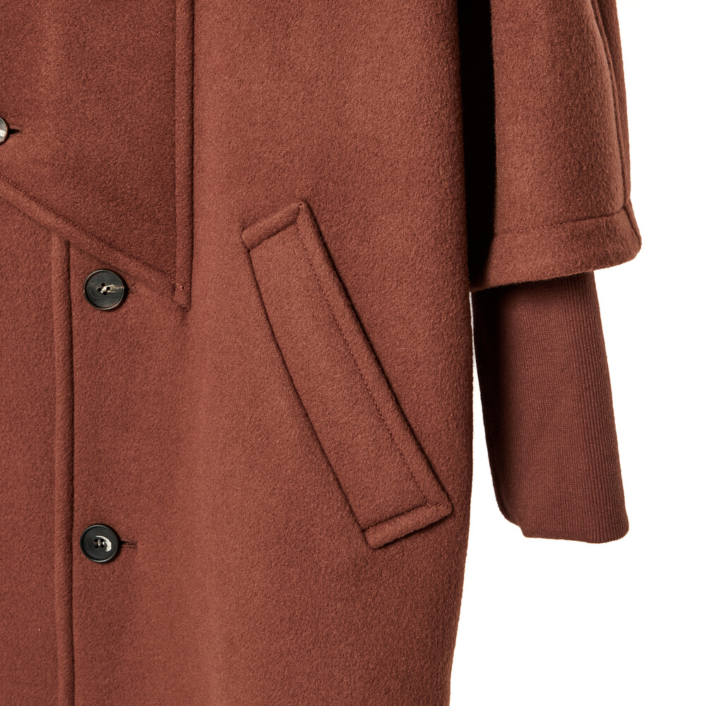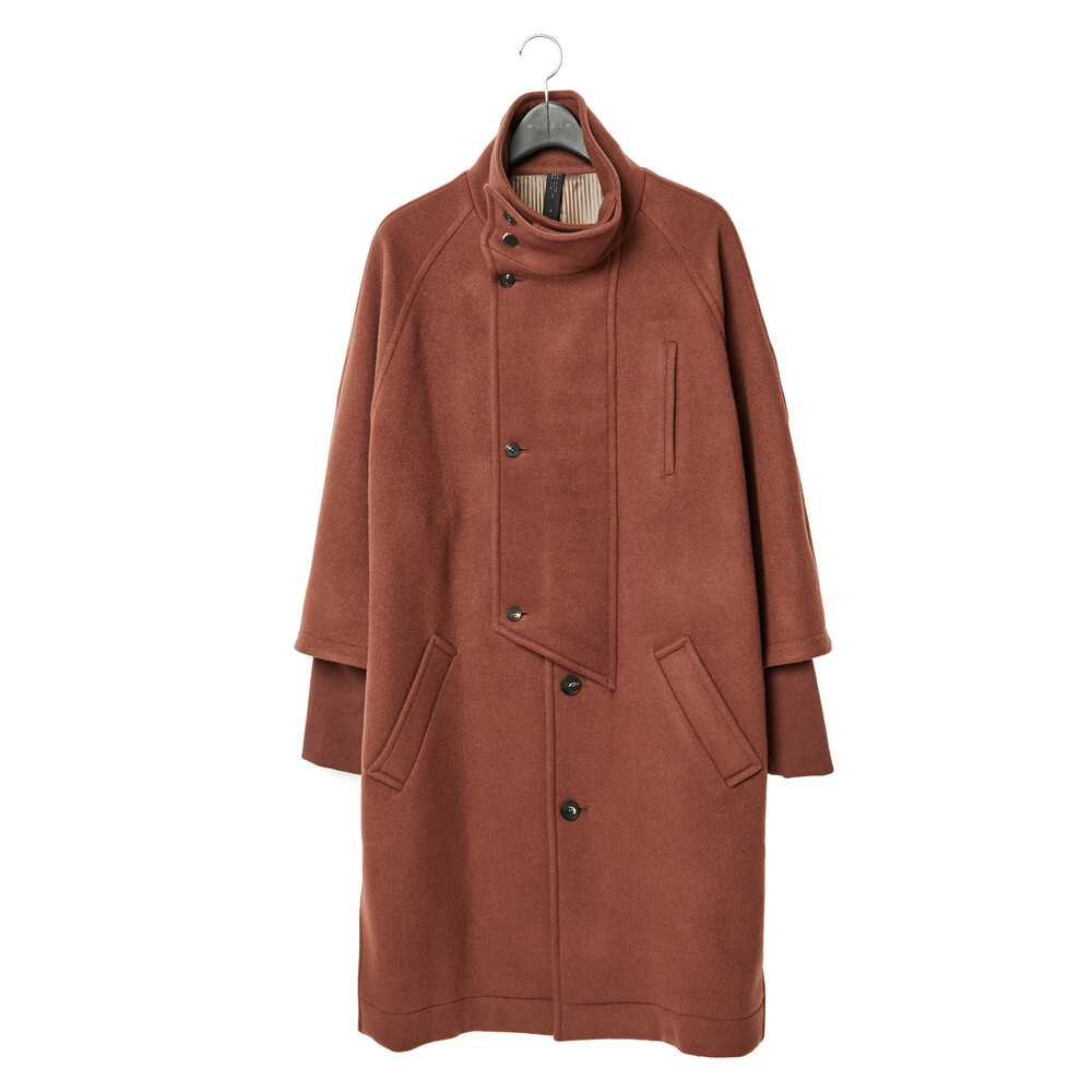 코트 전면부에는 덮개와 같은 덧단이 있어서 이를 활용한 스타일링이 가능합니다.