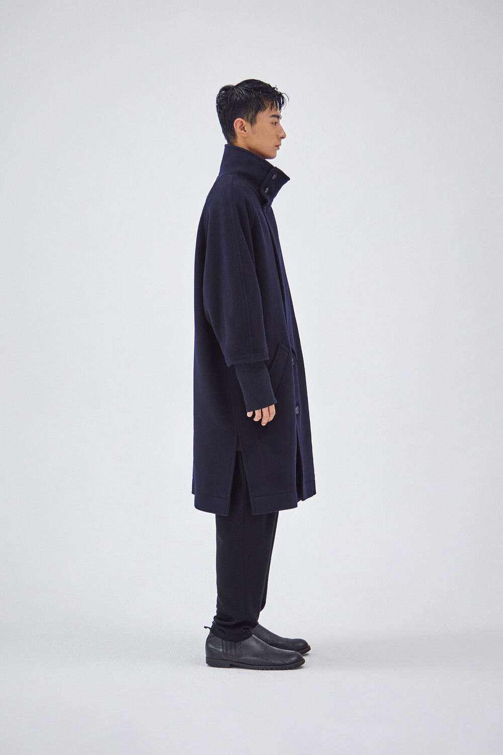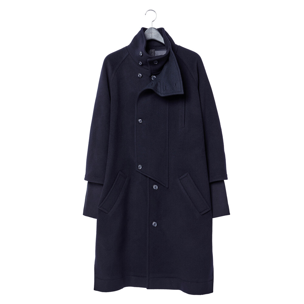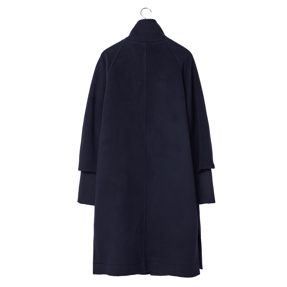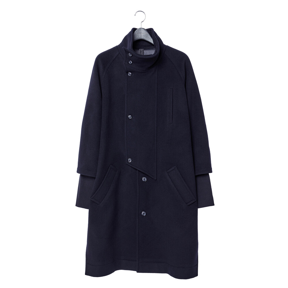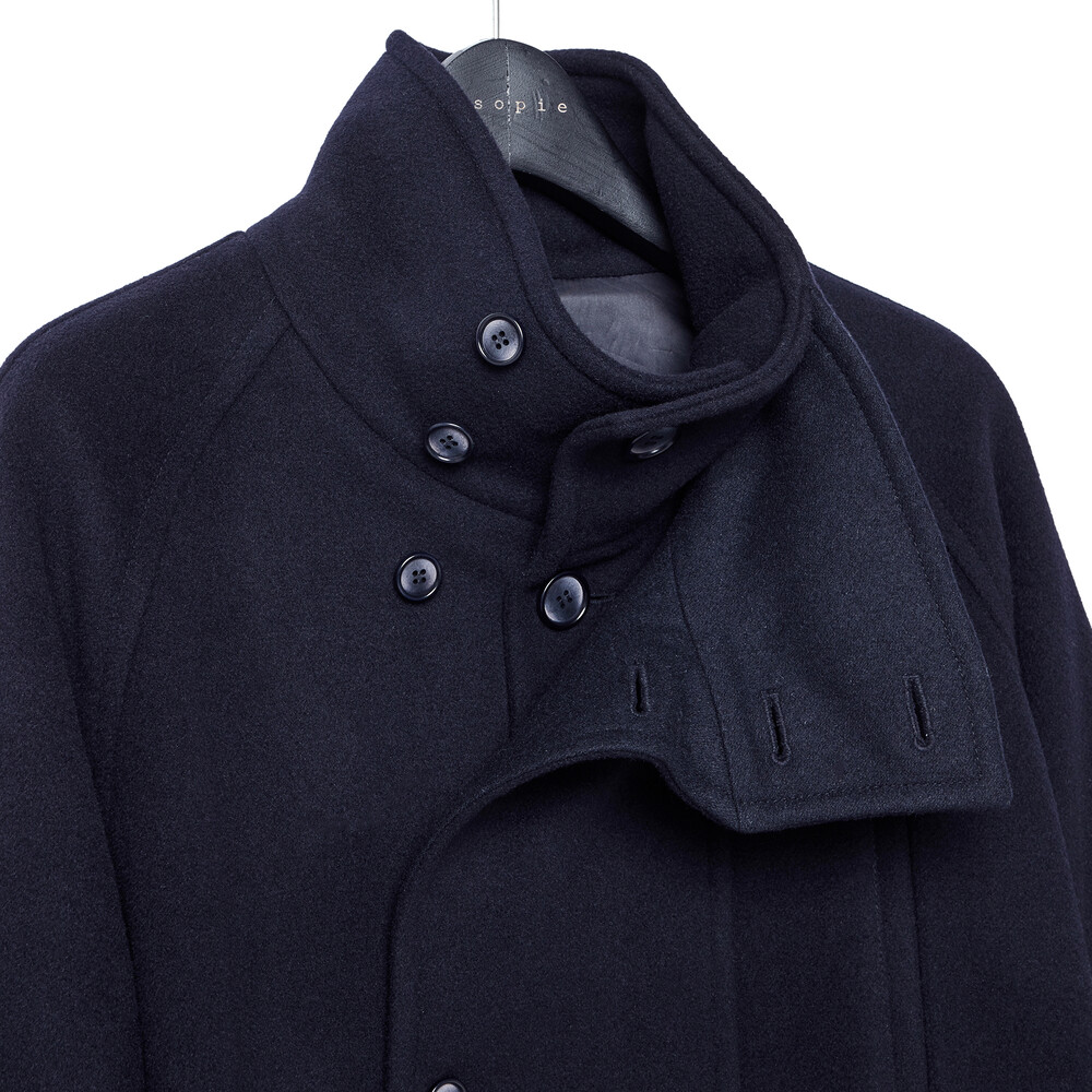 코트 전면부에는 덮개와 같은 덧단이 있어서 이를 활용한 스타일링이 가능합니다.