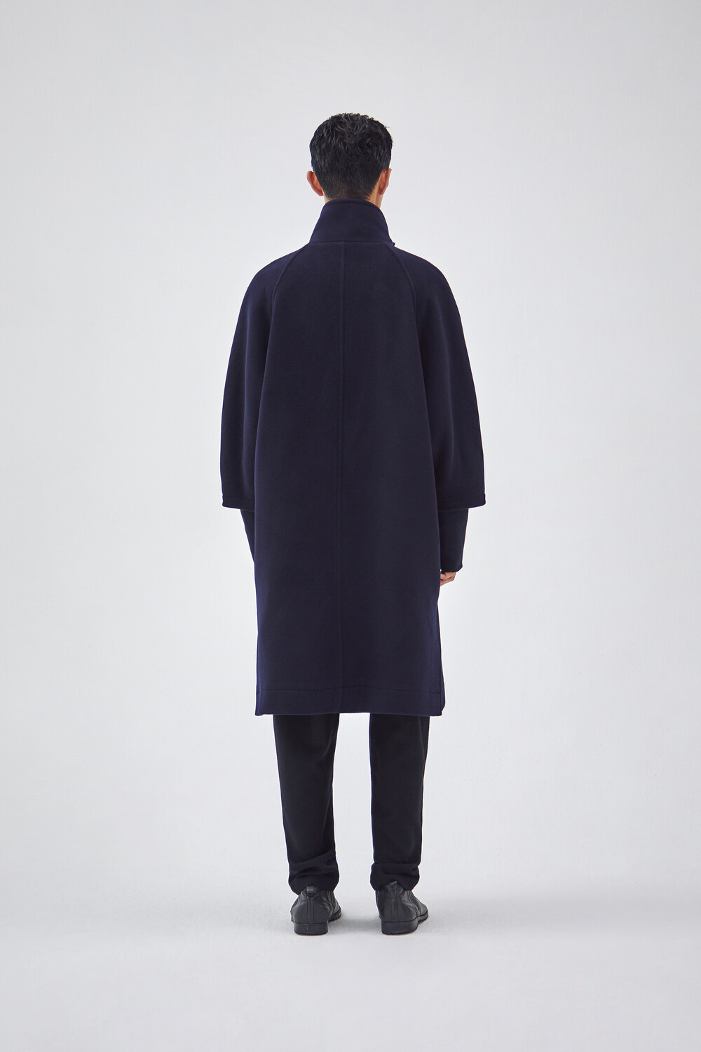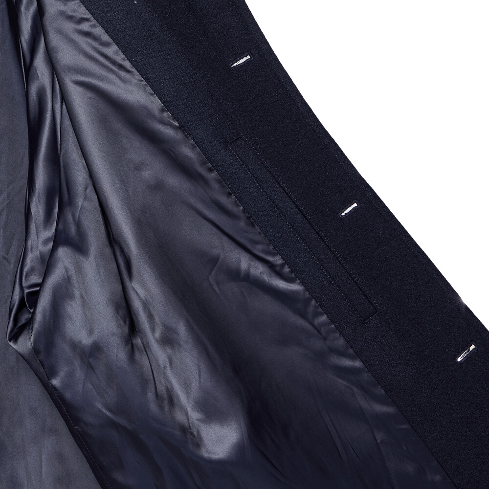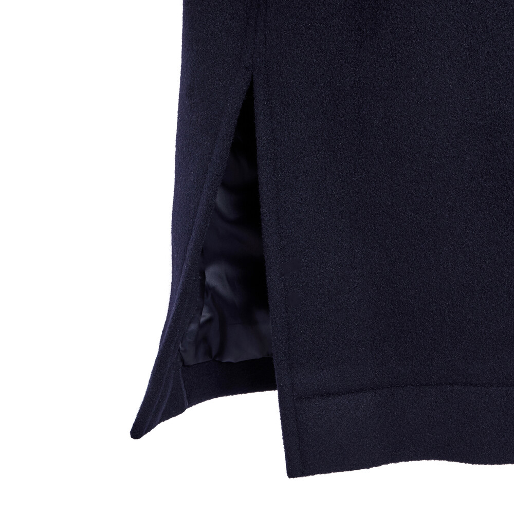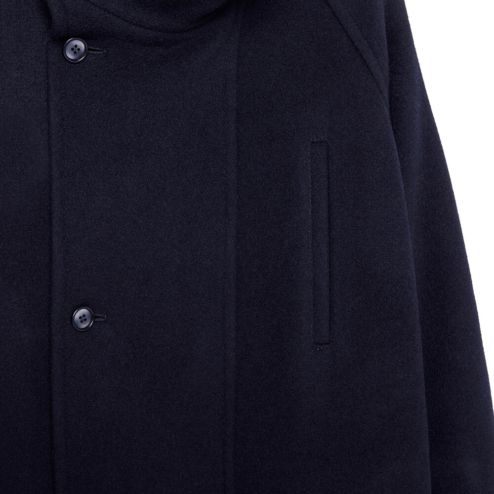코트 전면부에는 덮개와 같은 덧단이 있어서 이를 활용한 스타일링이 가능합니다.
