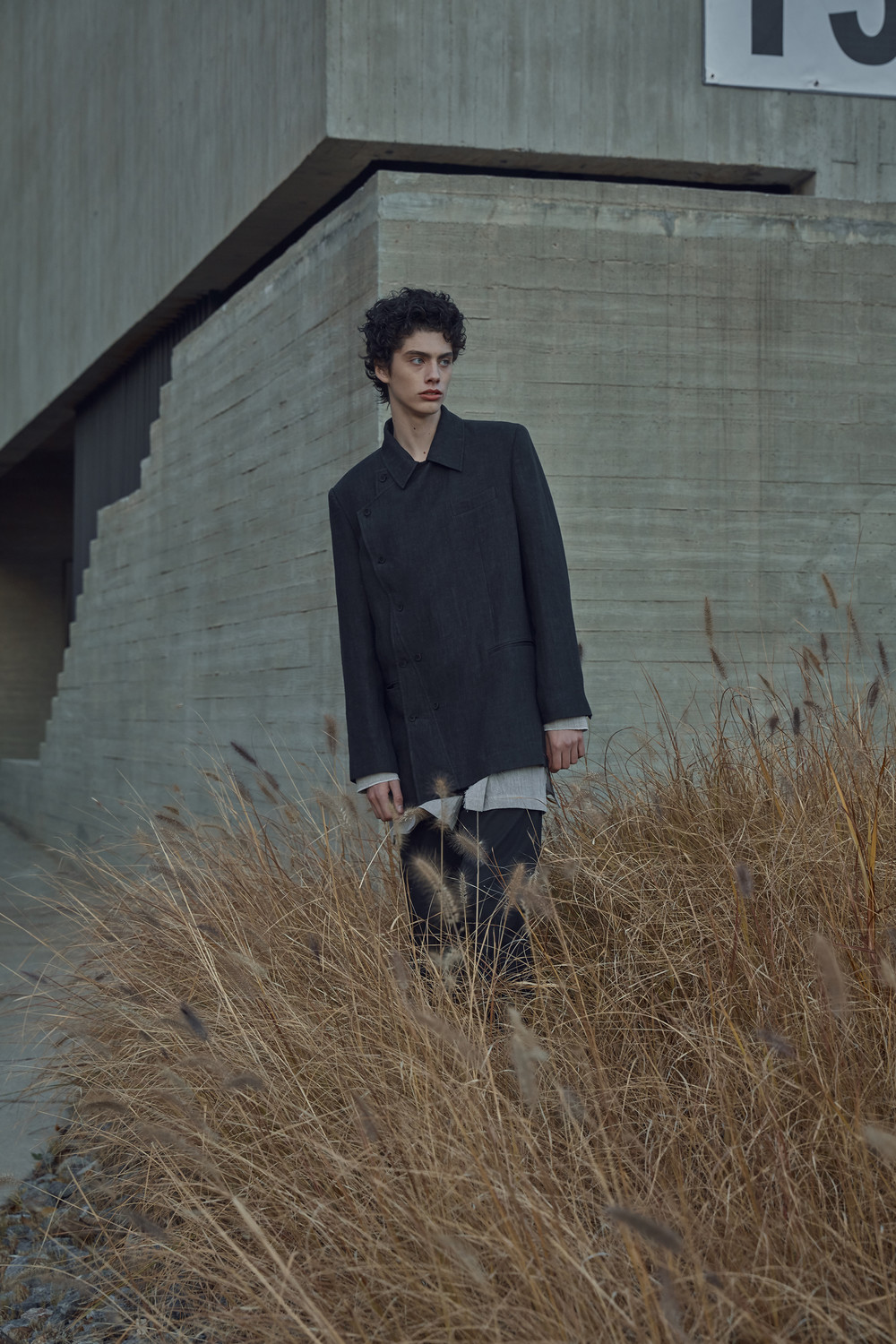셔츠의 특성과 자켓의 특성을 동시에 갖도록 디자인된 자켓임. 국내산 고급 100% 린넨 원단을 사용하였으며 자켓의 두께가 상당히 얇기 때문에 한여름 전까지 시원하게 착용하실 수 있음. ss시즌의 아웃터임을 반영하여 반안감을 사용하였고, 내부 시접은 고급 마감법인 binding tape처리. 앞판에 추가적인 패널, 단추 디테일이 인상적.